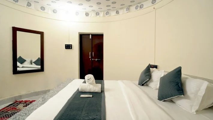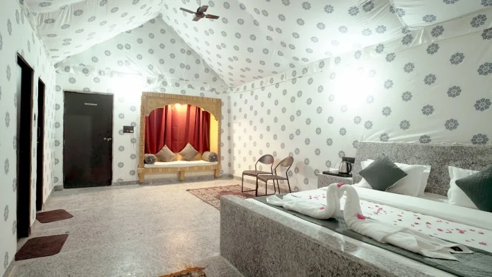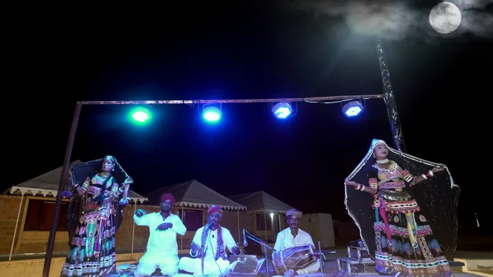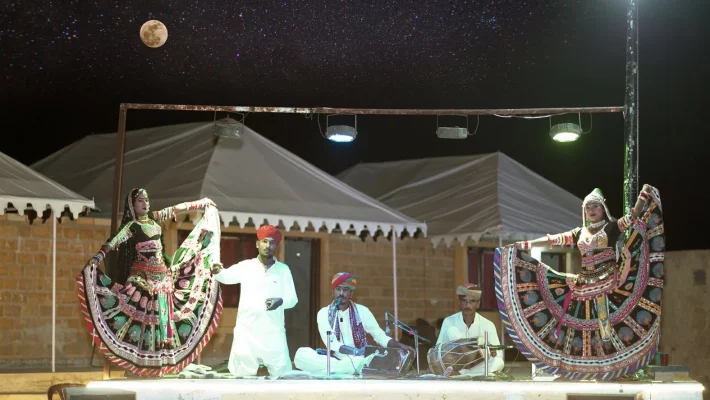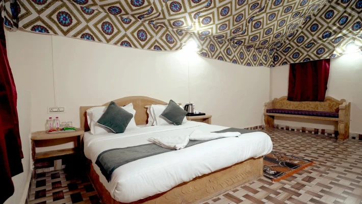 Thar Resort Jaisalmer is the Desert camp in Jaisalmer, located in the Middle of thar Desert Sam Sand Dunes in Jaisalmer Golden City. The Camp is built tastefully with 38 Deluxe Swiss Tent & Cottages with Attached Bathrooms and Modern amenities. Thar Resort is a professional Organizer of all the adventure Activities of thar desert Like, Desert Safari, Camel Safari, Adventure Jeep safari in Jaisalmer and Dinner on Dunes.